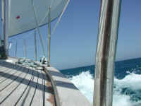 durch einen makellosen Himmel, eine sanfte achterlich einfallende See, kaum
